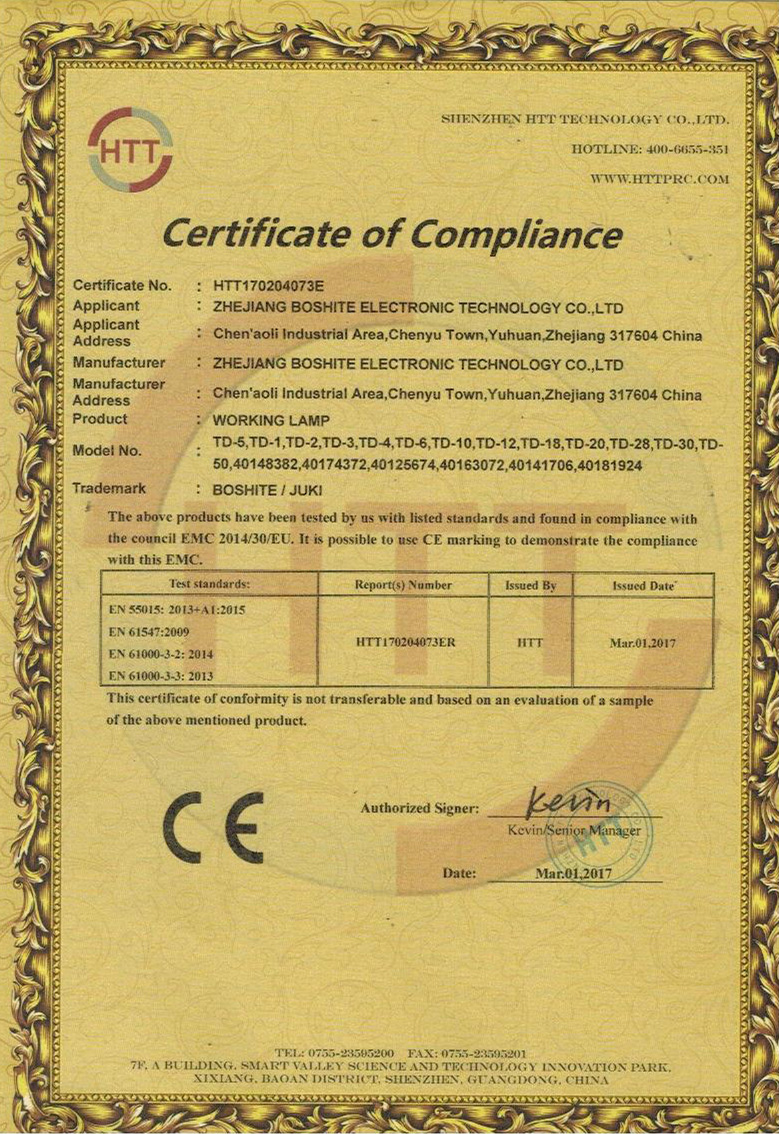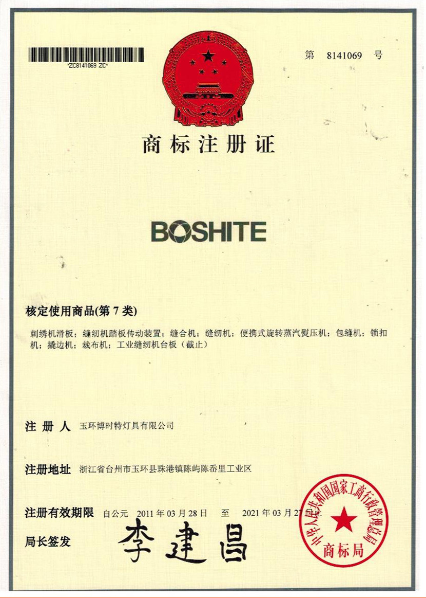 “BOSHITE” 商標(biāo)注冊(cè)證