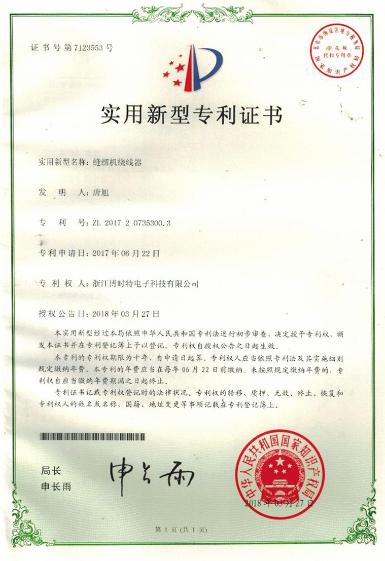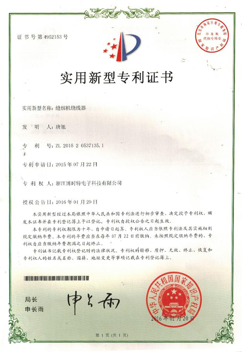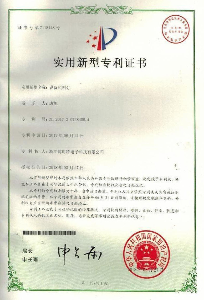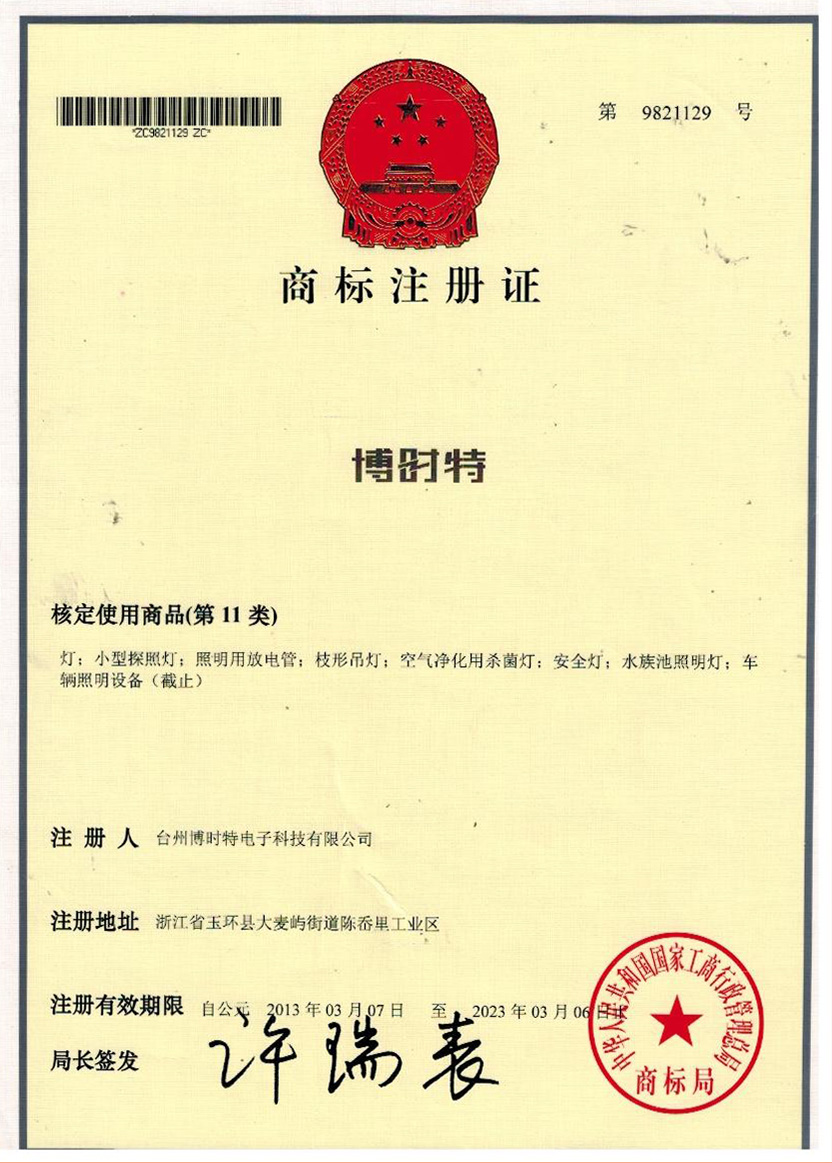 “博時(shí)特” 商標(biāo)注冊(cè)證